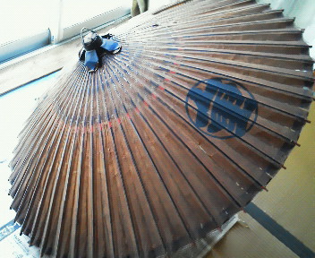 納戸にあった番傘引っ張りだして資料写真撮れた。広げてみるとかなり大きくて、おじいちゃんの名前が入れてあったよ。