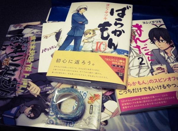 ばらかもん10巻とはんだくん2巻げっとだぜ!同時購入特典のファイルも貰えた。銀さんの着物柄マステもげっと!